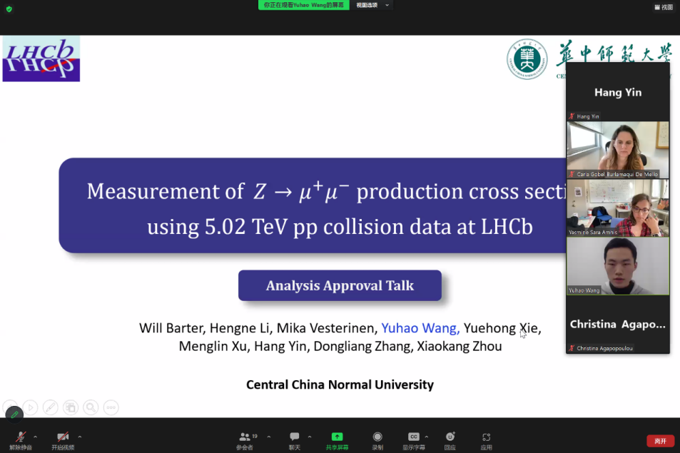 图 2 王禹昊同学正在LHCb国际合作组内部做相关的学术报告。图中作者名单按照字母顺序排序