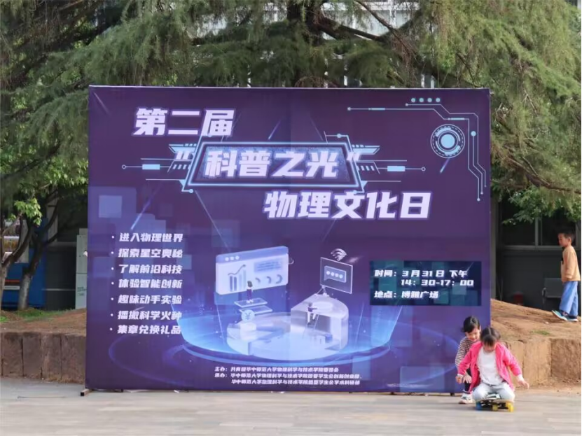 3月31日下午,由共青团华中师范大学物理科学与技术学院委员会主办,物理科学与技术学院团委学生会创新创业部与学术科研部承办的“科普之光”物理文化日在博雅广场举行。